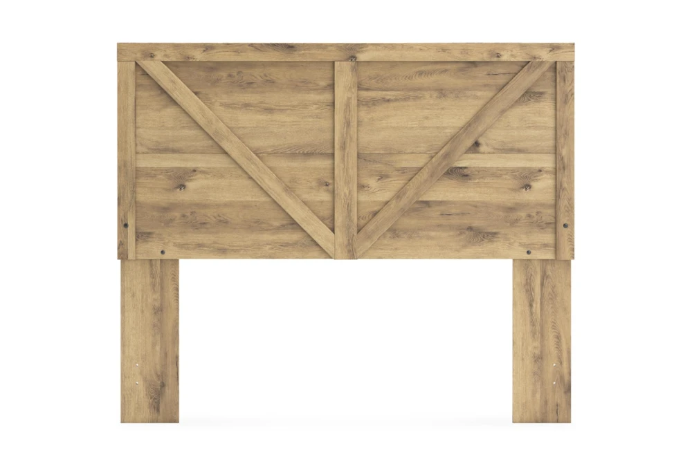 The Lowe Natural Queen Headboard is a rustic addition to any bedroom, made of wood with a golden rustic finish over replicated oak grain. Assembly is required for this natural piece, which also features matte black sconce lights and is made of engineered wood and laminate.