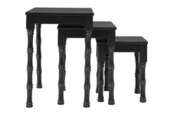 The Magdeline 3 Piece Nesting Table Set is a traditional-style furniture set made of black-colored wood/engineered wood. The set features three pieces that can be nested together, making it perfect for small spaces, and assembly is required.