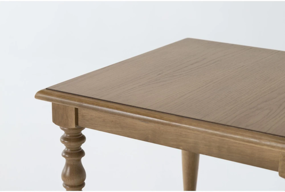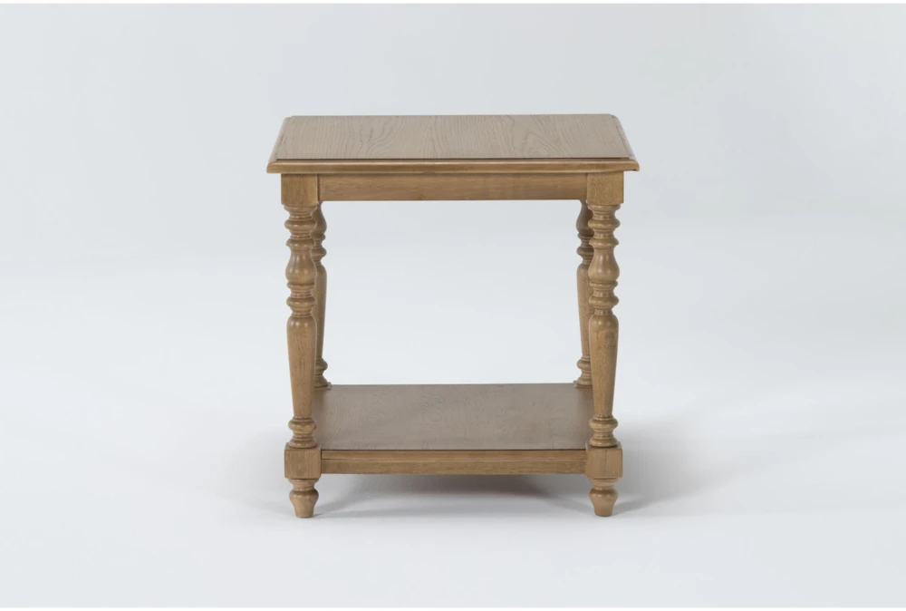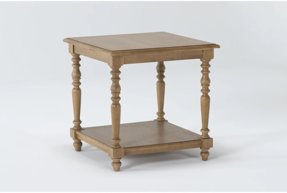 The Bowen end table from Magnolia Home by Joanna Gaines brings traditional charm to your home with its tapered spool leg design and oak veneer in a weathered barn finish. Use the lower shelf to keep your favorite reads, coasters, or candles close by.