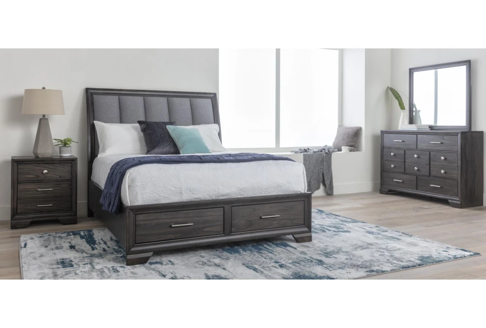 Dean Sand Queen Upholstered 3 Piece Bedroom Set With Larkin White Chest Of Drawers + Nightstand