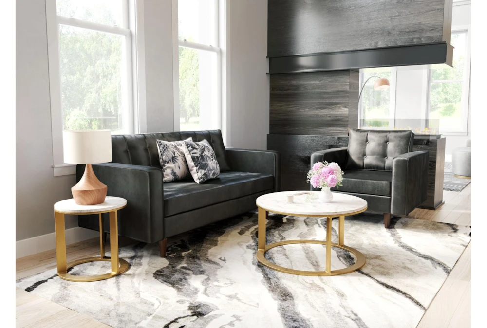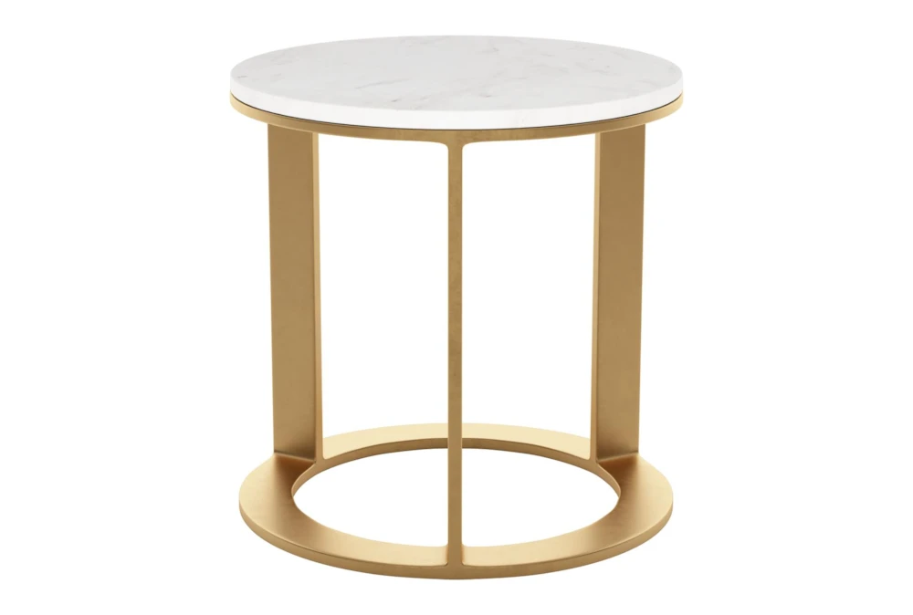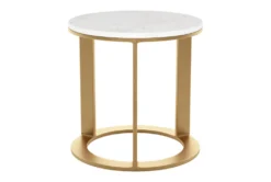 This Marble & Circular Gold Base Side Table is the epitome of modern elegance, featuring a stunning marble top and a sleek metallic base that is already assembled for your convenience. It effortlessly blends sophistication and functionality, making it the perfect addition to any contemporary living space.