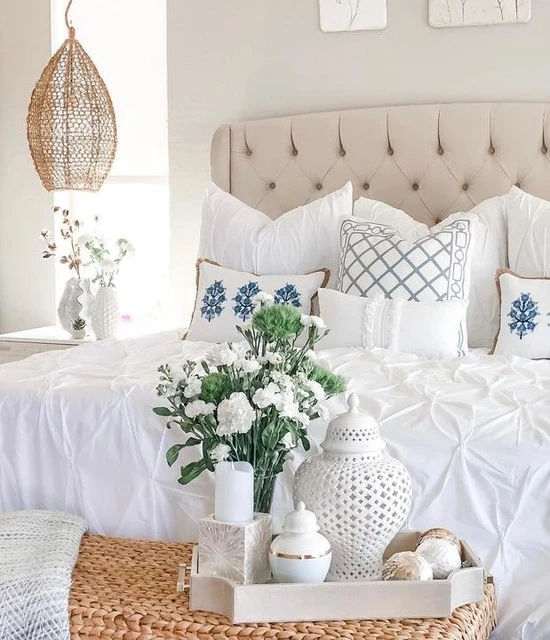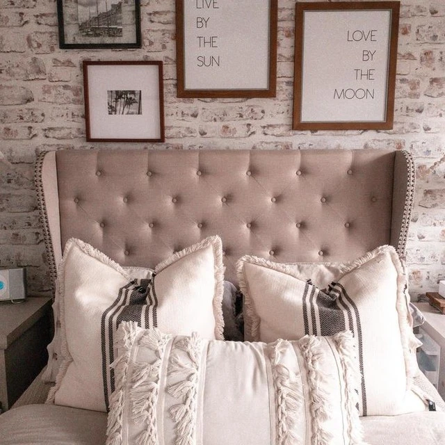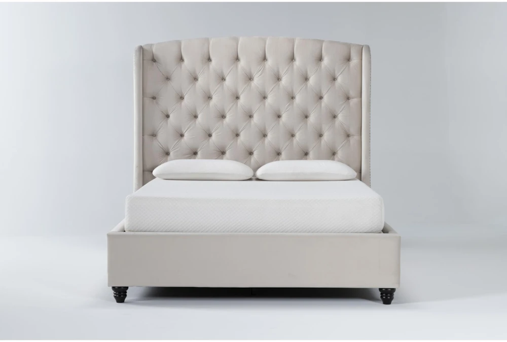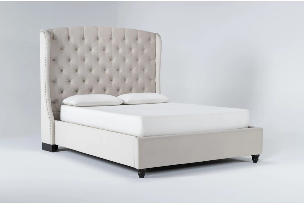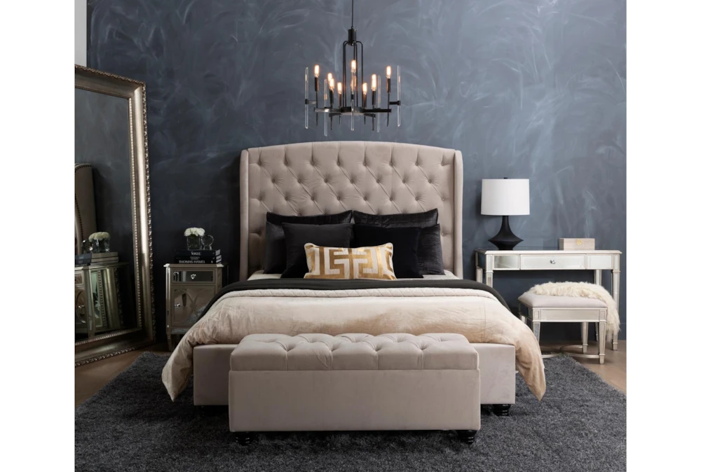 Our grand Mariah upholstered bed transforms average rooms into luxurious retreats. The headboard is the star of the show, thanks to a handcrafted, hand-tufted design. It features a subtle wingback shape, which is highlighted by nailhead trim, and it’s the perfect backdrop for resting your head while reading or watching TV. The entire frame is upholstered in premium-grade fabric, and it’s reinforced by sturdy steel brackets, rail cleats, slats and supports.