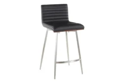 PU Leather, Foam, Brushed Stainless Steel, Wood