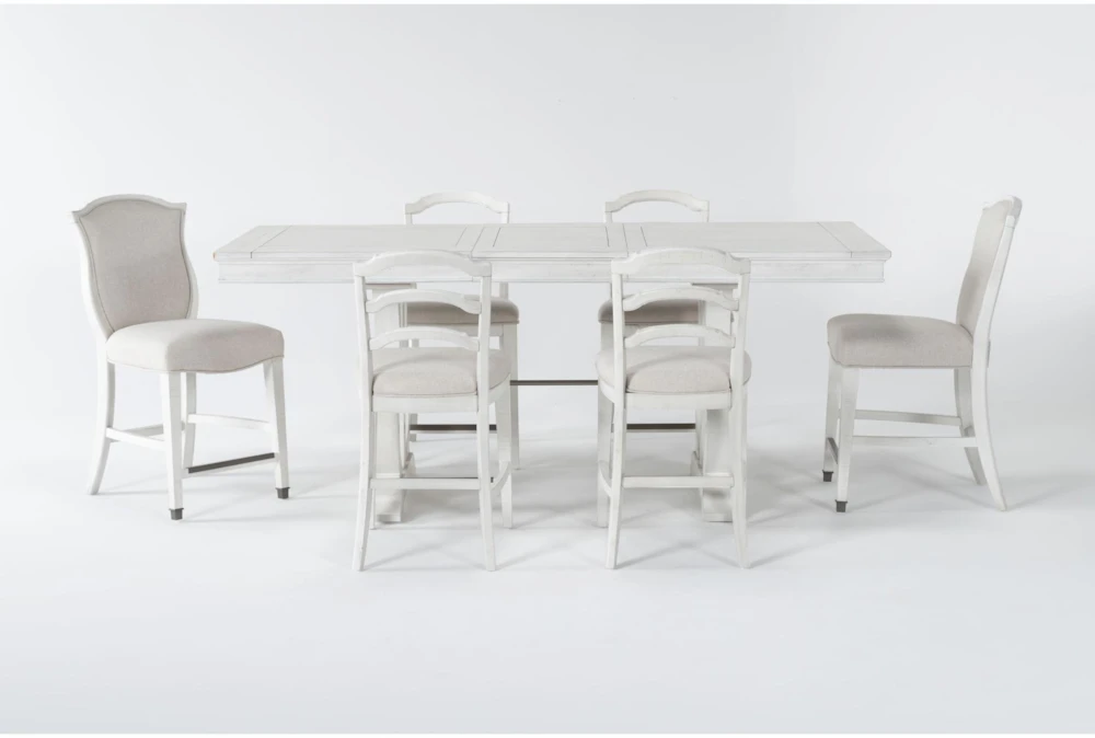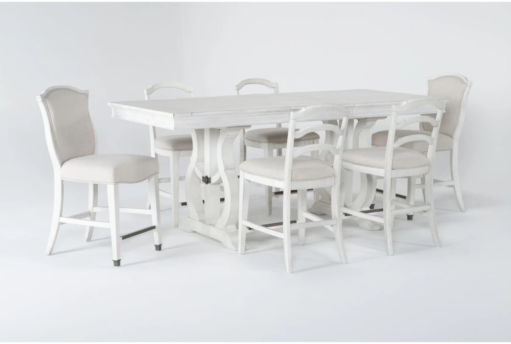 Our popular Martin dining collection is taking entertaining to the next level with counter height designs and storage pieces that bring the same beloved class and elegance to your space. Graceful curves, old-world details and meticulous pine construction bring a sense of tradition, while the increase in stature keeps things casual and approachable. In addition to a striking table, plus upholstered and wood stools, you can add a wine tower and bar cart that serve as beautiful, functional additions to special occasions. The pieces feature a distressed rubbed-through finish, which showcases the wood’s authentic, natural characteristics.