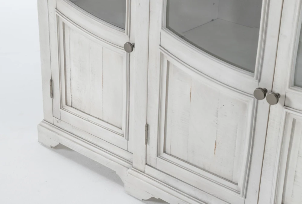 Start new traditions and celebrate special occasions with the help of our grand Martin server. Graceful lines distinguish the elegant design, which boasts durable pine construction, classic details and a variety of convenient features. In addition to 4 wood doors with glass inserts and 2 adjustable shelves behind each, there is wire management. The piece features a distressed rubbed-through finish to showcase the wood’s authentic, natural characteristics