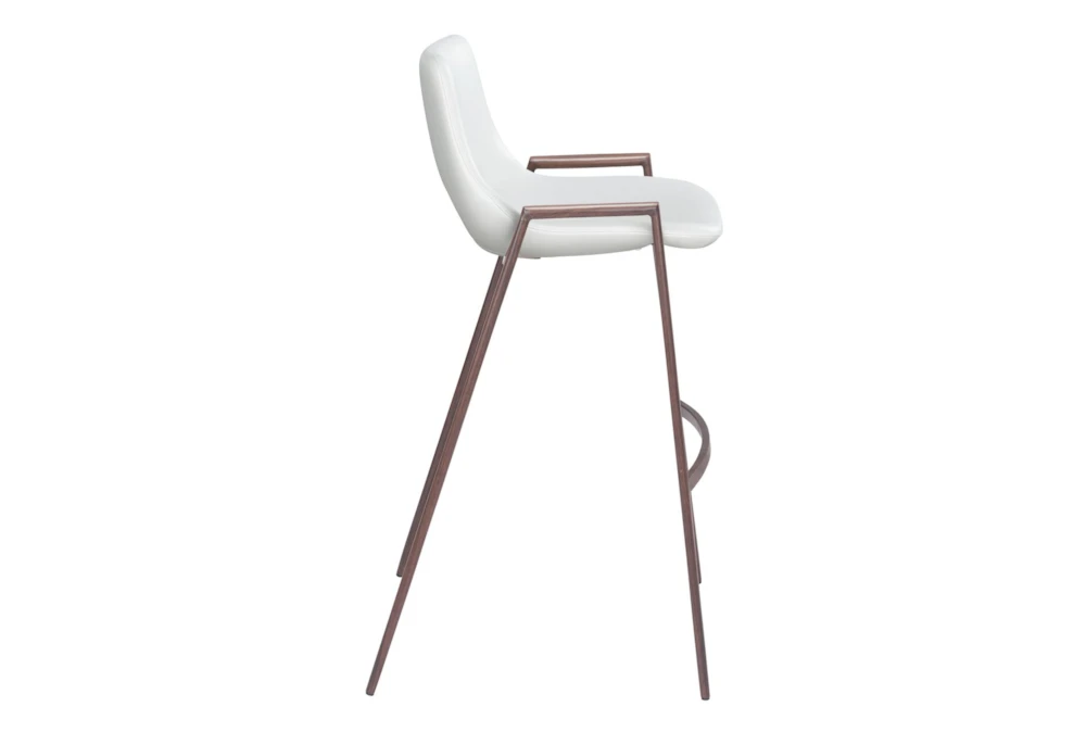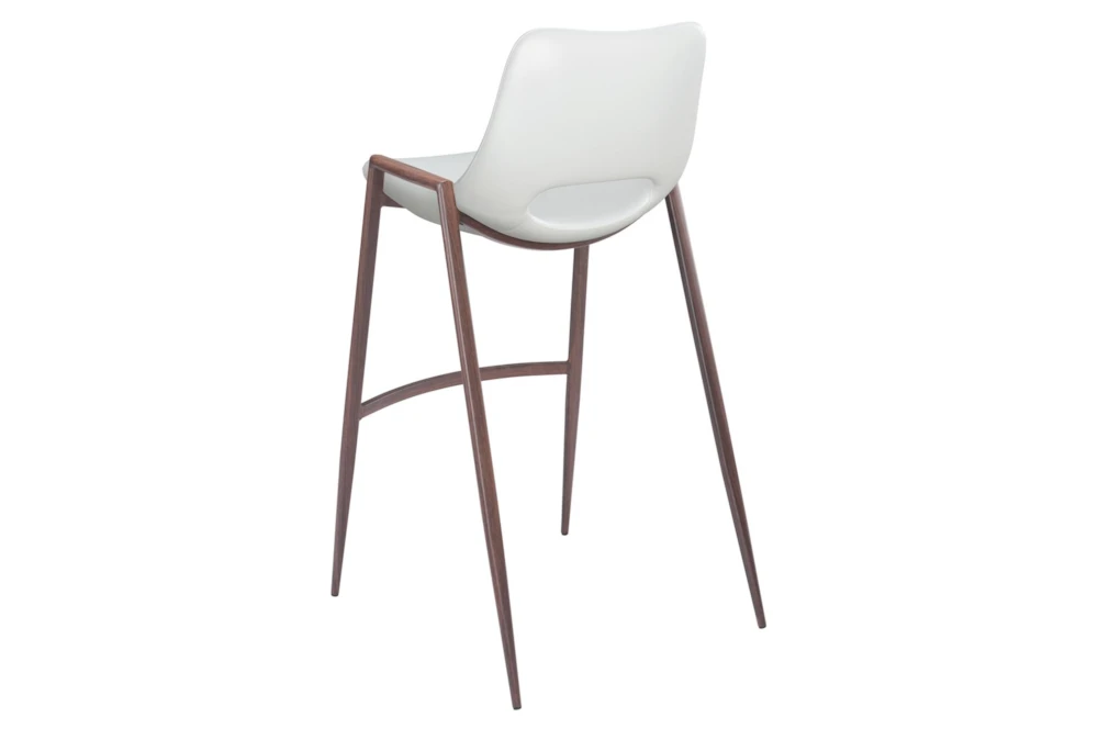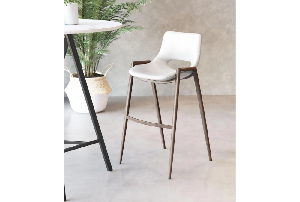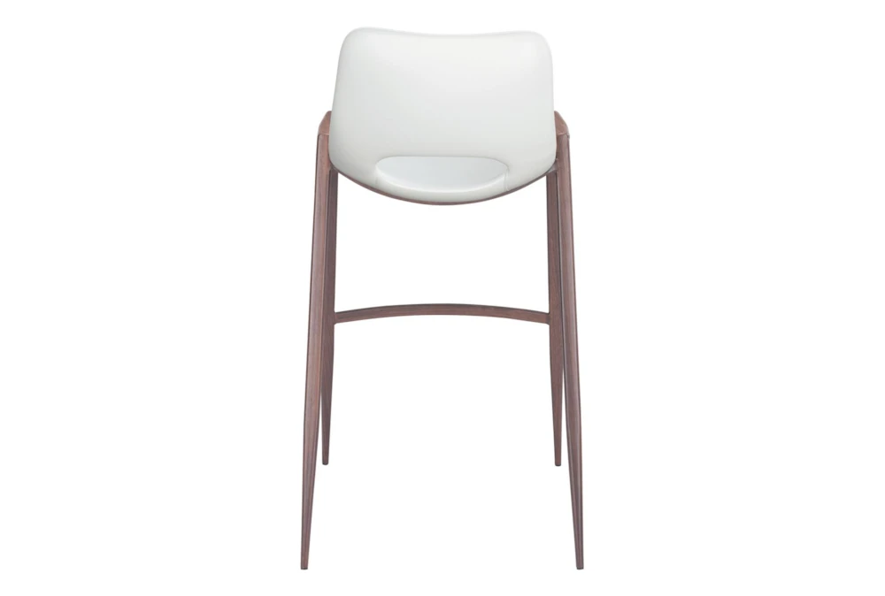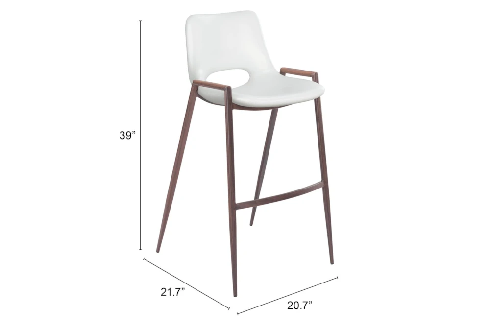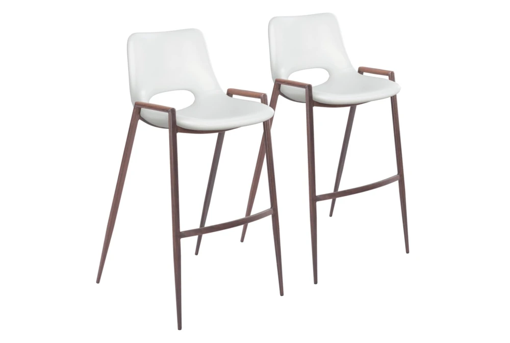 This Modern White Bar Stool Set Of 2 is a stylish addition to any dining room, featuring armless design and a supportive back. Made with durable metal and 100% polyurethane foam, this set requires assembly and is available in white and dark brown.