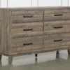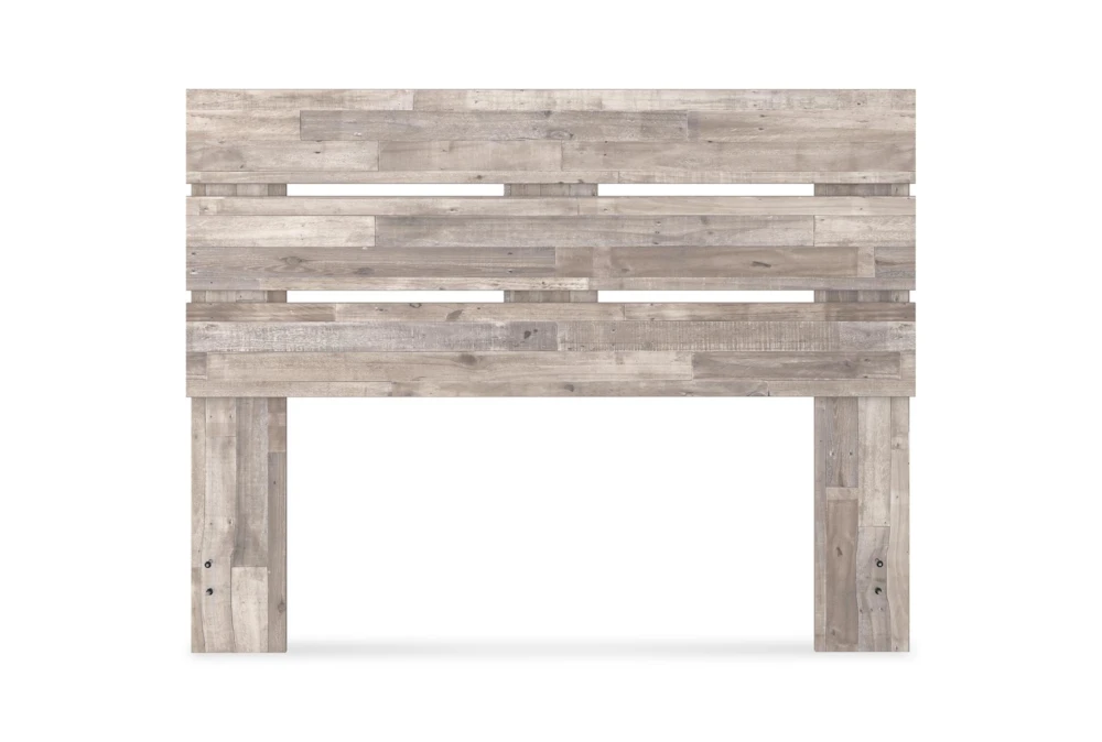 This Navarro queen headboard is made of rustic wood with a whitewash finish over replicated pine grain, giving it an authentic touch. Assembly is required, and the engineered wood and laminate construction features a butcher block design.