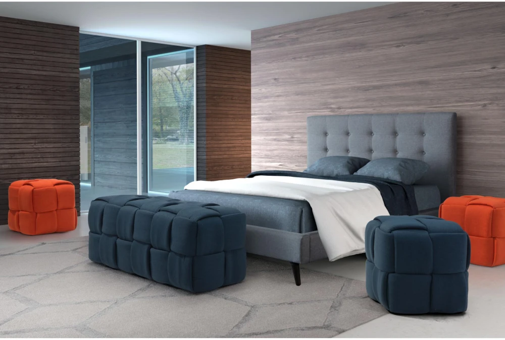This Navy Blue Fabric Weave Ottoman is a beautiful addition to any modern interior with its stylish design and sleek color. It is made of high-quality polyester material and features a sturdy wood frame, ensuring both comfort and durability.