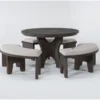 Bringing new meaning to clean living, our Pierce Espresso dining set lends airy, streamlined style to every meal. Sleek, minimalist profiles distinguish the designs, which feature sturdy hardwood and oak construction in a rich umber finish. While the table and bench dazzle with their strikingly architectural bases that are painted bronze for a metal look, the chair supports and comforts with an upholstered back and seat.