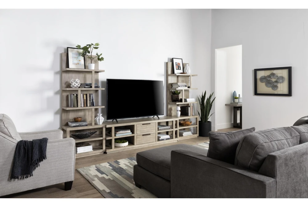 Books, magazines and accessories can call our Pierce Natural entertainment pier home sweet home. With plenty of space to store living room essentials, this design invites you to put all of your favorites on display. Solid hardwood and oak veneer in a light wood finish ensure this beauty is strong and sturdy.