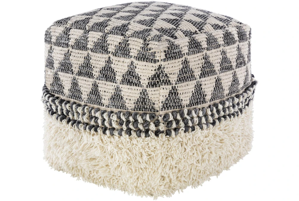 This Pouf-Charcoal Ivory Pattern Shag is the perfect addition to any rustic-style home decor. Its shag and fluffy features are crafted from high-quality fiber, ensuring both comfort and durability.