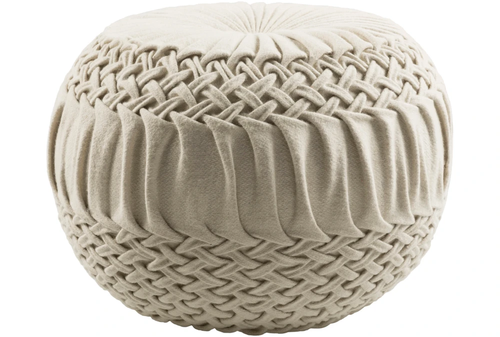 This Pouf-Cream Knitted Round is a contemporary piece made of soft fiber material and designed with intricate crochet details. Perfect for any living room, its natural color adds a touch of warmth and elegance to any space.