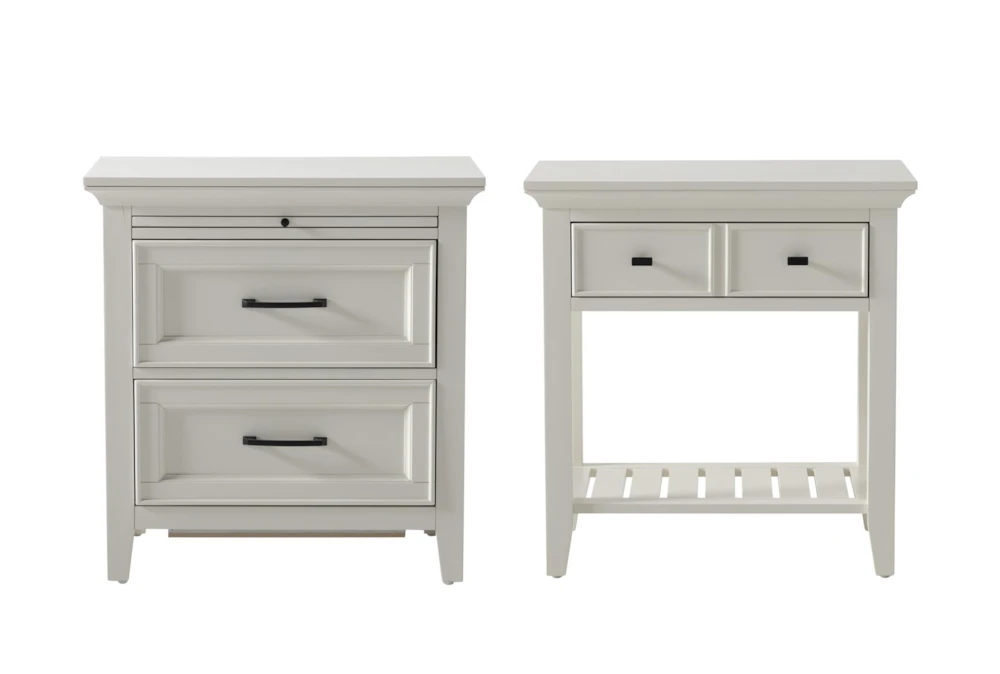 Crafted to bring simplicity, functionality and quality to your retreat, our Presby open nightstand is a timeless addition. Available in 2 versatile finishes, the design boasts sturdy solid hardwood and veneer construction complete with handsome hardware and charming molding details. From French dovetail joinery in front, to English dovetail joinery in back and side mounted ball-bearing guides, the drawers are built to last. It also includes USB ports to charge your devices.