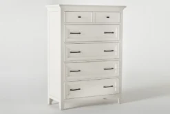 Crafted to bring simplicity, functionality and quality to your retreat, our Presby chest is a timeless addition. Available in 2 versatile finishes, the design boasts sturdy solid hardwood and veneer construction complete with handsome hardware and charming molding details. From French dovetail joinery in front, to English dovetail joinery in back and side mounted ball-bearing guides, the drawers are built to last.