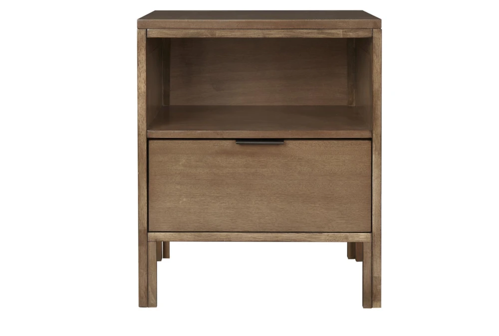 The Redding 24″ Nightstand is a casual addition to any bedroom with its light brown color and sturdy wood construction. It features one drawer for storage and comes fully assembled for your convenience.