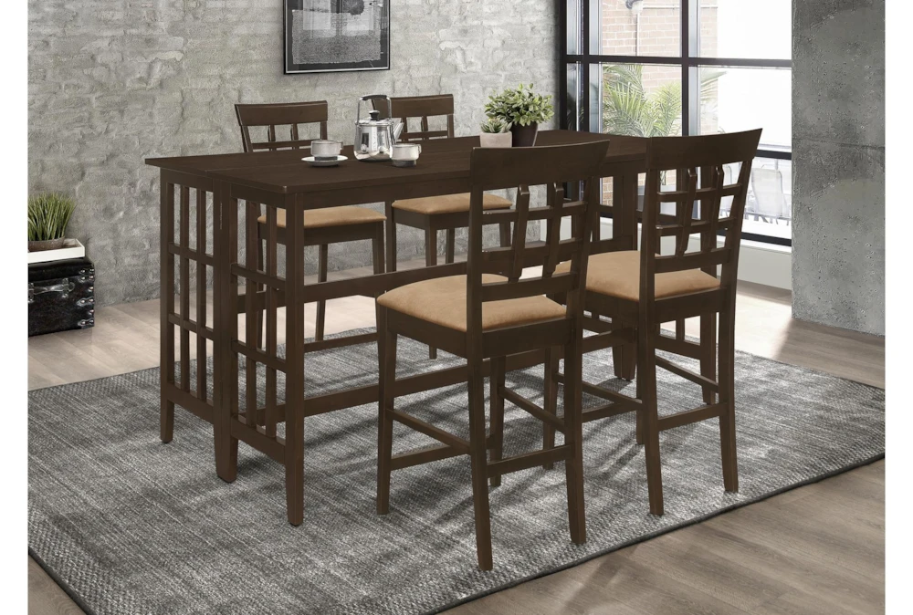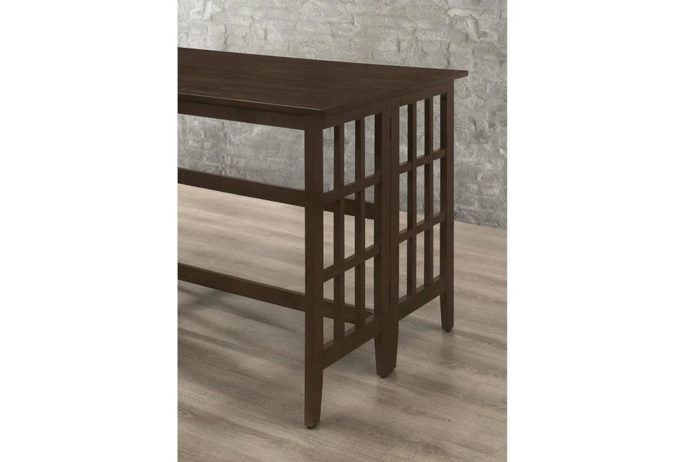 The Shawna 70 Inch Counter Table is a casual, brown wood dining room piece that boasts a tall, high pile design. Crafted from Asian hardwood, tropical wood, ash veneer, and MDF, this natural walnut table comes with one counter height table and a table leaf size of 17.7 inches.