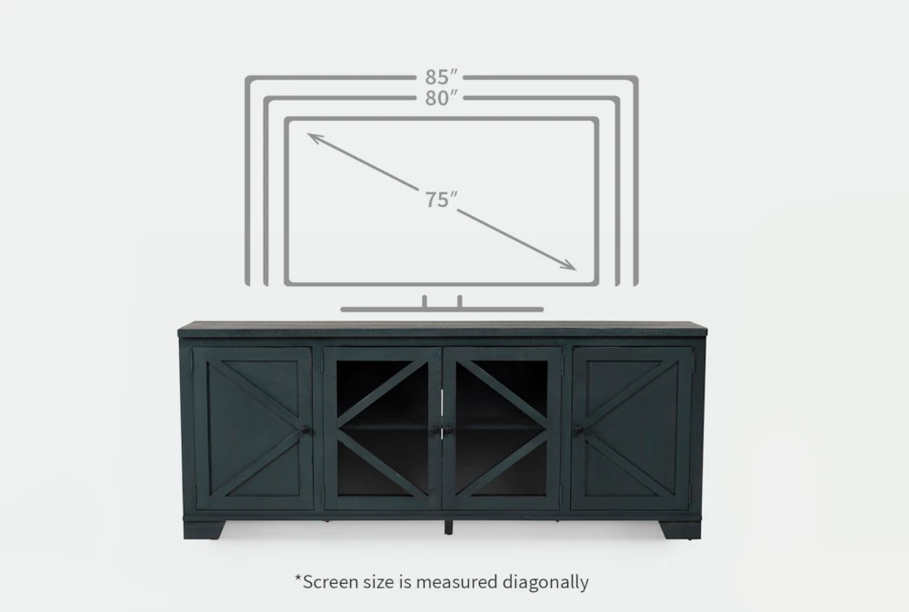 Be the first to review “Sinclair Blue Lagoon 78″ TV Stand With Glass Doors” Cancel reply