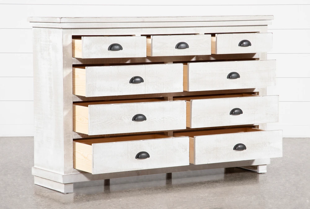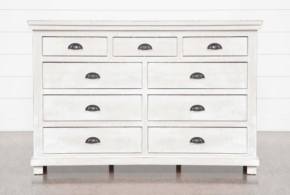 Let natural beauty take over your space with our Sinclair Pebble dresser. Constructed with salvaged solid pine, the design is rough hewn and planed to showcase the wood’s unique characteristics. Then, the wood is decked in a grey chalk finish with hand-applied distressing for a weathered look. To ensure maximum durability, it incorporates tongue and groove construction, solid pine drawer interiors and metal guides. Vintage-inspired bin pulls in a gunmetal finish are an extra special touch you’ll love.