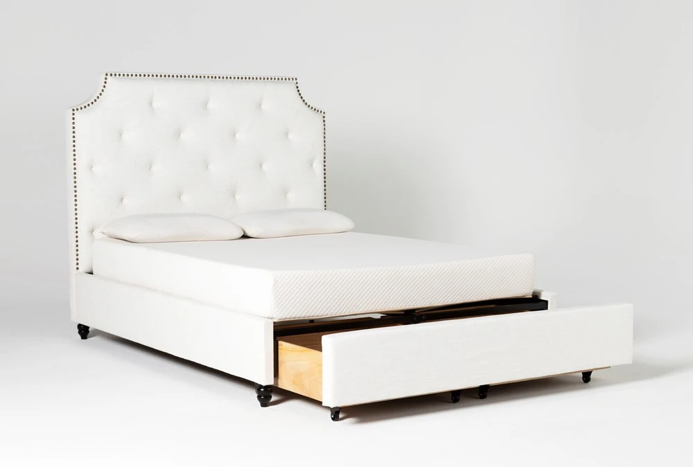 Distinguished by its exceptional quality and beauty, our Sophia II bed is as fashionable as it is comfortable. Available with or without storage, this stunner boasts hand-applied diamond tufting and bold nailhead trim. The elegant upholstered design also features a sturdy Euro-Slat system, which can support your mattress without a box spring.