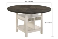 The Tricia Chalk Grey Counter Table is a tall, casual dining room table made of wood, specifically Mindy veneer, MDF, and rubberwood. Its elegant chalk grey color adds a touch of sophistication to any dining room.