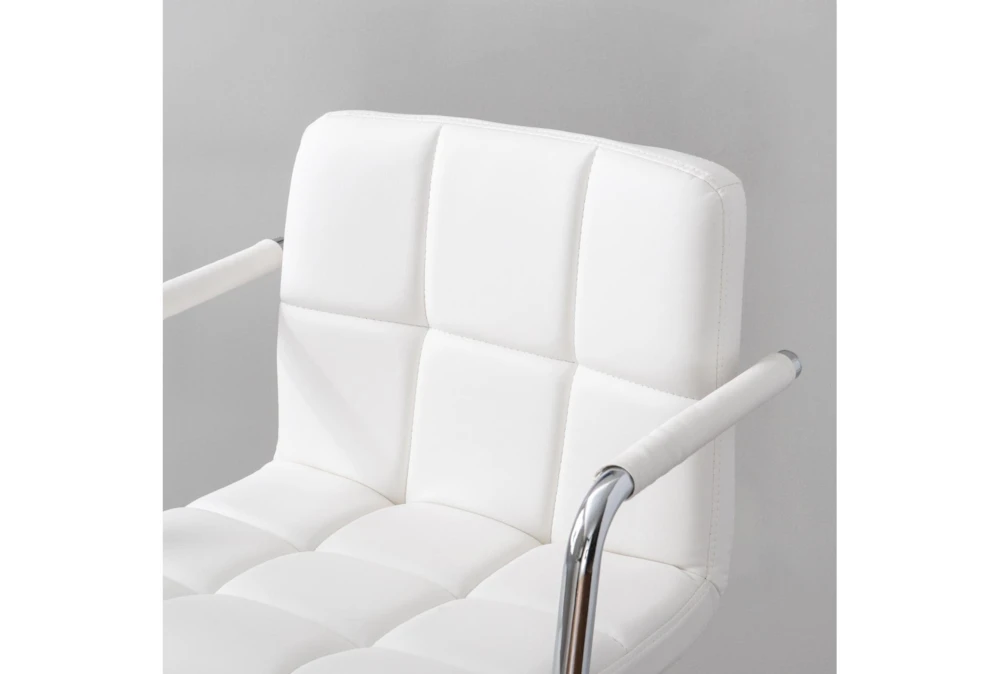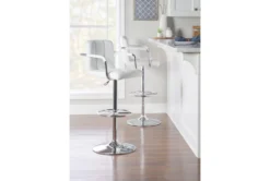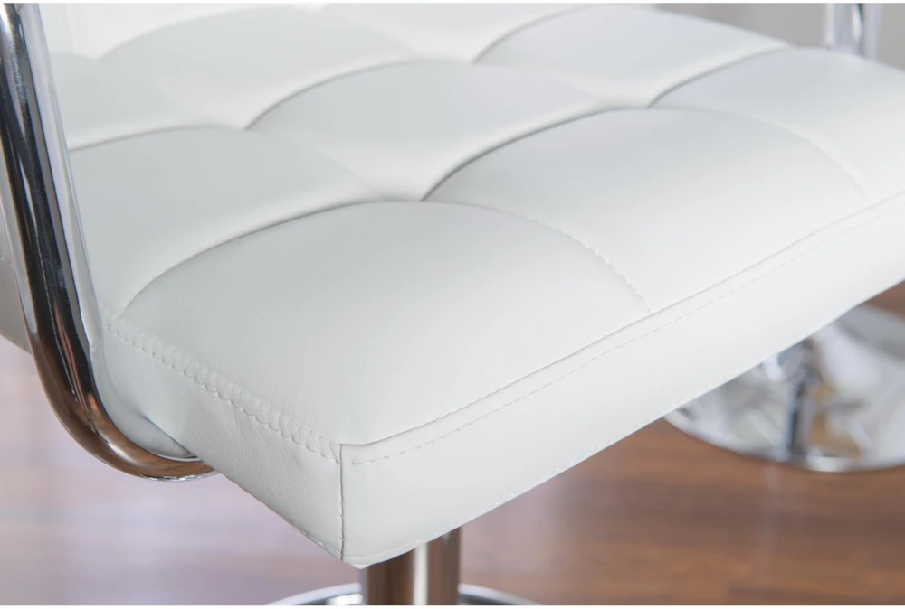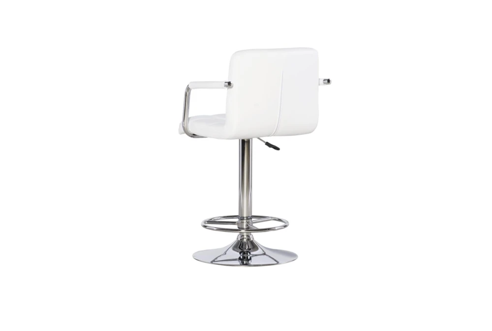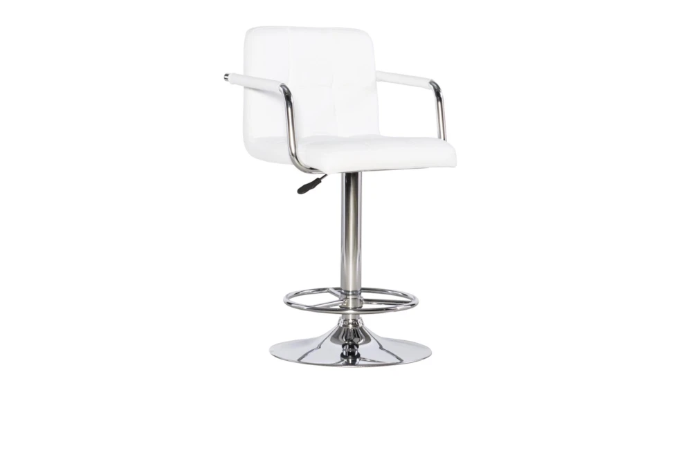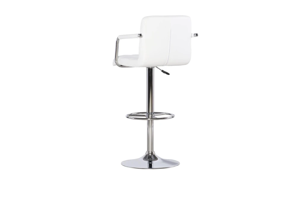 This Troy White Adjustable Barstool is a modern style barstool made of metal and wood, with adjustable arms and a white color perfect for the dining room. Assembly is required and it is made of 65% metal, 25% plywood, and 2.5% each of foam, PU, plastic, and hardware, with rubberwood as the secondary material.