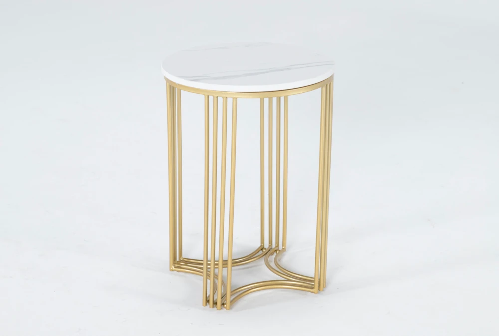 Glam materials and unique construction shine on our Vanna accent table, which serves as the perfect perch for drinks, vases, candles and more. From the gold finish to the marble top, every element is luxe.
