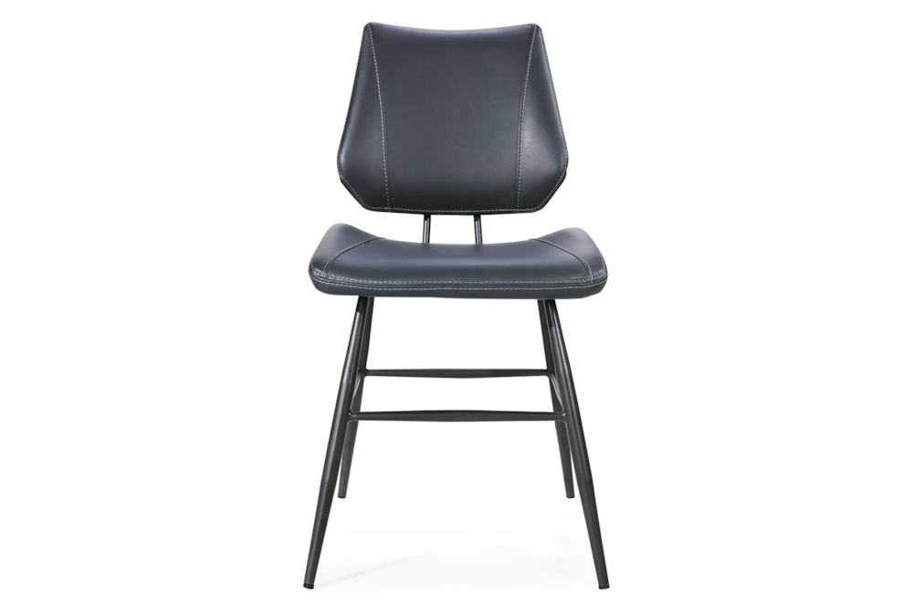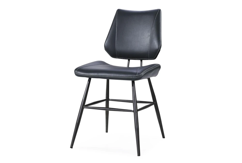 The Vinson Cobalt Dining Side Chair Set of 2 is a modern addition to any dining room, featuring blue polyurethane upholstery and metal frames. Assembly is required and the chairs are designed for small spaces.
