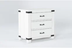 When it comes to bringing charm, character and function to your retreat, no collection does it better than our Wade bedroom designs. Enriched by farmhouse features, these pieces offer inviting style, quality construction and a combination of hardworking materials. In addition to solid pine and pine veneers in a silo white finish, you’ll find metal elements in a forged iron finish. Drawers with French and English dovetail joinery and side-mounted ball-bearing guides ensure smooth operation, while details like USB ports in the nightstand and touch LED lighting on the storage bed incorporate convenient smart technology.