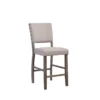 Enjoy a set of counter height stools that feature cream-colored wood frames with steam-bent curved slats, as well as padded seat cushions with fossil-hued upholstery.