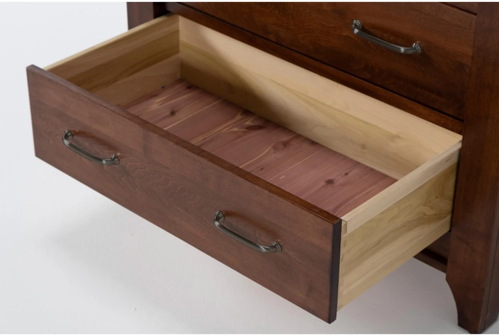 Wake up and fall asleep in a space that brings you peace with the handsomely constructed Westin bedroom collection from our American-Crafted solid wood furniture line. Hand-built by skilled Amish woodworkers who use time-honored techniques, each piece is signed by the artisan and showcases the natural beauty, quality and integrity of solid brown maple. Meticulous attention to detail is obvious in every feature – from dovetailed solid wood drawers, to mortise and tenon joinery to full-extension side-mounted ball-bearing guides that ensure smooth operation. Extra special touches include nickel hardware and the headboard’s herringbone design, which is rich with one-of-a-kind character. Available in multiple finishes, you can select the perfect option for your space.