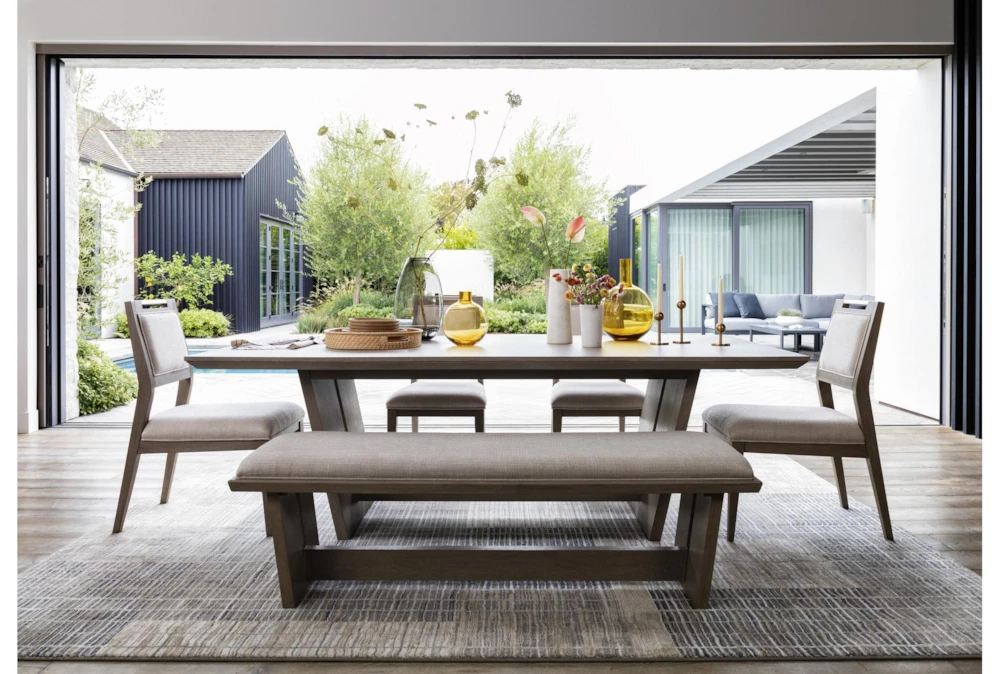Every detail is intentional in our Westridge dining collection, including the table’s generously proportioned center support, where you can rest your feet and truly kick back during long dinners. Even the chair has been thoughtfully designed, as it includes a handle that makes it easy to pull out for guests. In addition to a bench that provides an alternative seating option, there’s a coordinating sideboard for storage, plus a bar cart that keeps the party going.