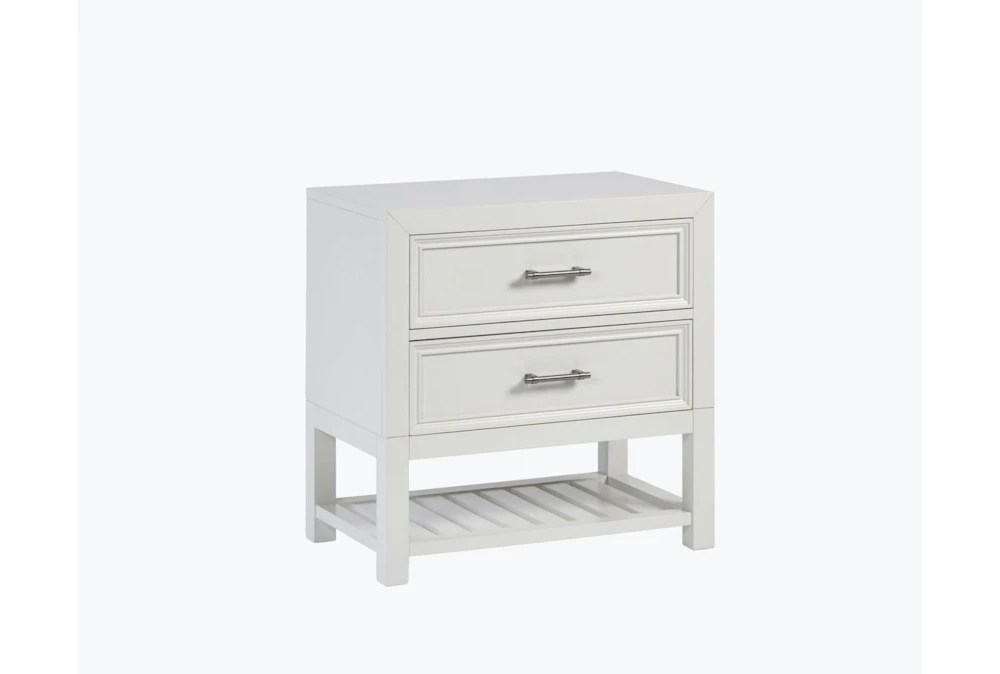 This White 2 Drawer End Table is a stylish addition to any small space with its Casual design and Tuxedo White color. Crafted from durable Rubberwood, MDF, and Plywood, this End Table comes fully Assembled and features handy Drawers for extra storage.