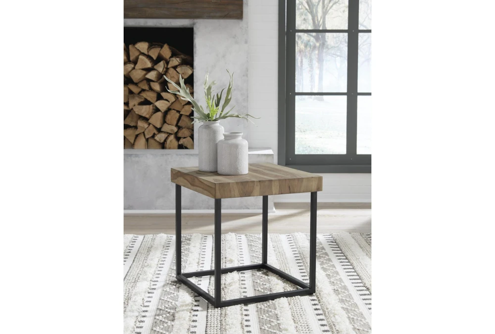 Bring rustic charm to your living room with the Wick End Table, crafted from wood and accented with metal. This assembly-required piece is shipped via UPS parcel and boasts a warm brown color, perfect for adding a touch of nature to your home decor.