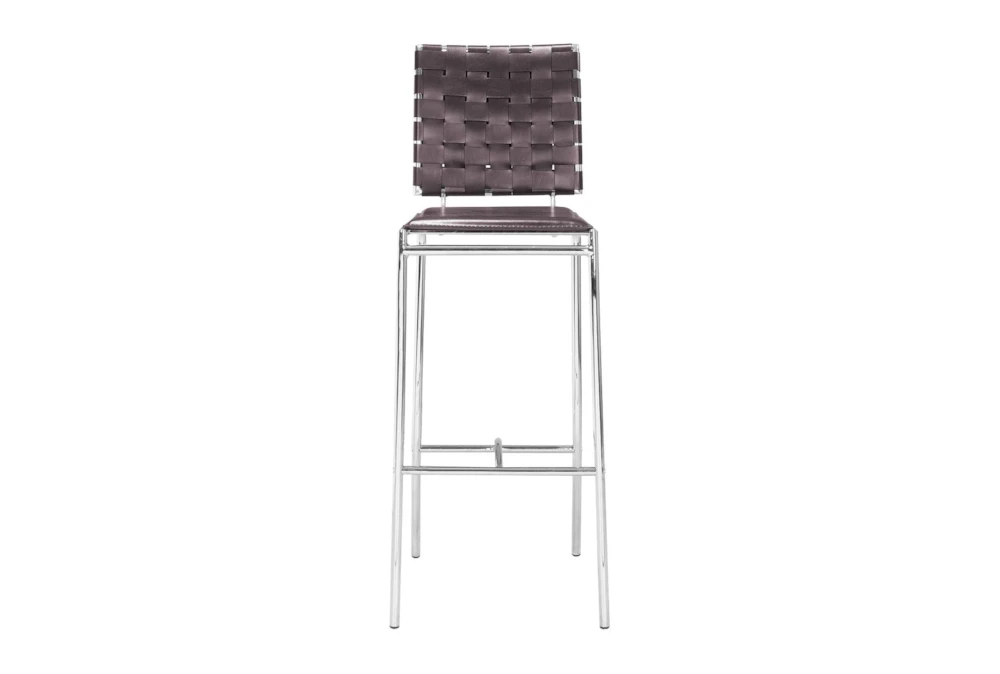 Elevate your dining experience with this set of 2 modern woven espresso bar stools, designed to add a touch of sophistication to any dining room. The armless stools are made of metal and feature a stylish woven design, making them both durable and aesthetically pleasing.